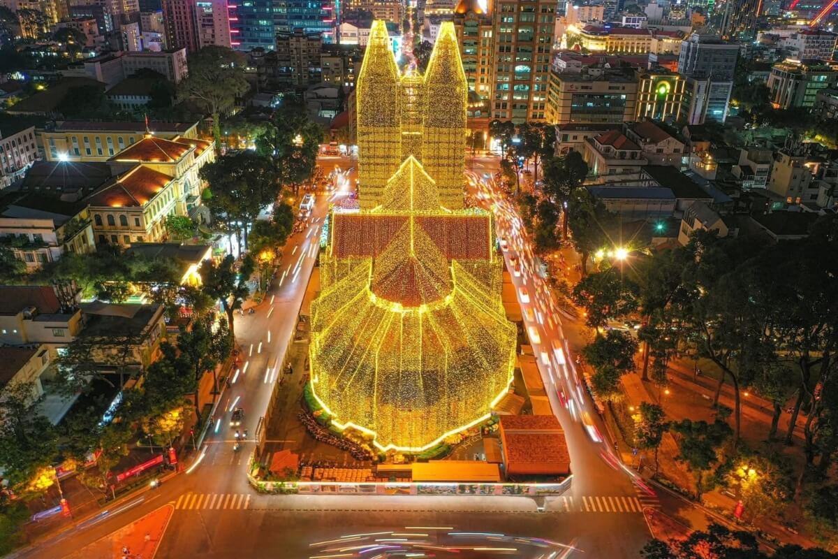 Christmas Eve mass here is known for its grand choir, emotional hymns, and warm community spirit. The surrounding areas - Dong Khoi Street, Diamond Plaza, and Nguyen Hue Walking Street - transform into a vibrant holiday hub filled with bright lights, Christmas displays, and plenty of festive photo opportunities.