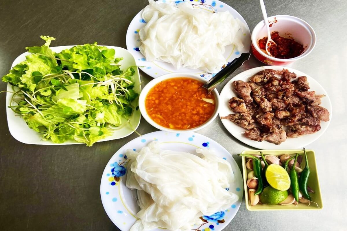 An interactive dish that’s as fun as it is delicious. You’ll assemble your own rolls with grilled lemongrass-marinated pork, fresh herbs, star fruit, and cucumber. Wrap them in soft rice paper (banh uot) and dip into a flavorful sauce made from soybean paste, peanuts, sesame, fish sauce, and chili. The combination of smoky grilled meat and crisp greens captures the balance that defines Hoi An cuisine.